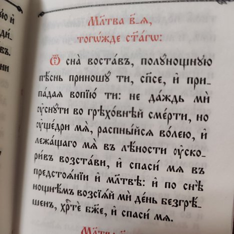 Оле мне! Хощу молитися да не умею, житие не исправил еси, ум в смятении и страдании о земных содержаяй. Сего ради Сам во мне молись, Спасе мой, Христе Боже, смятение ума укрощаяй, исправление живота даруяй. Яко ты, Спасе Премудрый, Спасе Благий, Спасе Безмолвный, и Жизнодавец еси, и Панктократор, и Господь мой. И Тебе Славу возсылаем и ныне...