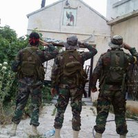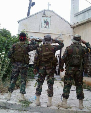Воины Хезболла (мусульмане) после жаркого боя за освобождение Православного Храма в Сирии, отдают Честь Святыне...