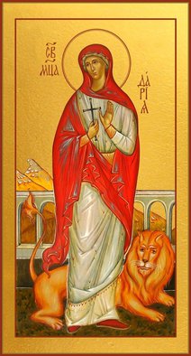 Мой День Ангела приходится на 1 апреля, в этот день Церковь празднует память святых мучеников супругов Хрисанфа и Дарьи. Святой Хрисанф был образованным молодым человеком. Читал много книг, в том числе и таких, в которых язычники ругали христиан. И чем больше юноша читал противного о христианах, тем сильнее хотел познакомиться с ними. Святого Хрисанфа тайно окрестил диакон Карпофор. А когда родители женили Святого Хрисанфа на жрице Афины-Паллады Дарье, то он сумел проповедью Евангелия, обратить в христианство свою супругу. Святые Хрисанф и Дария жили в духовном браке. Они повсюду проповедовали о Христе. Святая Дарья руководила женской общиной монахинь. А Святой Хрисанф был главным среди мужчин-монахов. К святым тянулось всё больше и больше людей. И жители города завидовали угодникам Божиим. и ненавидели святых супругов. Их обвинили в том, что они проповедовали безбрачие. Но вряд ли святые проповедовали безбрачие и принуждали людей к нему. Вступать в брак или нет личное дело каждого. А безбрачие ради Господа – это подвиг духовный, на который способен не каждый человек: «Кто может вместить, да вместит». От Матфея 19:12. Скорее всего, противниками Христа просто нужен был повод для обвинения святых супругов. Святую Дарья поместили в публичный дом, а её мужа посадили в яму с нечистотами. На помощь Святой Дарье был послан от Господа лев. Всех мужчин, которые хотели осквернить святую он валил на землю. И те убегали в страхе. А яма с нечистотами по молитвам Святого Хрисанфа наполнилась благоуханием. Люди хотели причинить угодникам Божиим зло, но Господь обращал из намерения в добро. Истина не была посрамлена в глазах людей. Император Нумериан отдал святых супругов в руки палачей. Но они после истязаний и мучений остались в живых и были заживо зарыты в землю. На месте казни святых стали собираться и молиться верующие. Император приказал замуровать пещеру вместе с молящимися. Таким образом мучеников за Христа стало ещё больше.