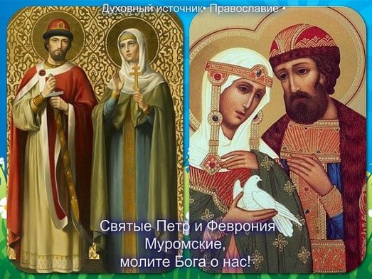 О СЧАСТЬЕ СЕМЕЙНОМ МОЛЯТСЯ, ПО ВСЕМУ ПРАВОСЛАВНОМУ МИРУ, МУРОМСКИМ ЧУДОТВОРЦАМ, ЧТОБ У ГОСПОДА, ИСПРОСИЛИ ---НАДЕЖДУ.ЛЮБОВЬ и ВЕРУ, и ВЕРНОСТЬ ДРУГ ДРУГУ ДО ГРОБА ! С ПРАЗДНИКОМ, МОИ ДОРОГИЕ !