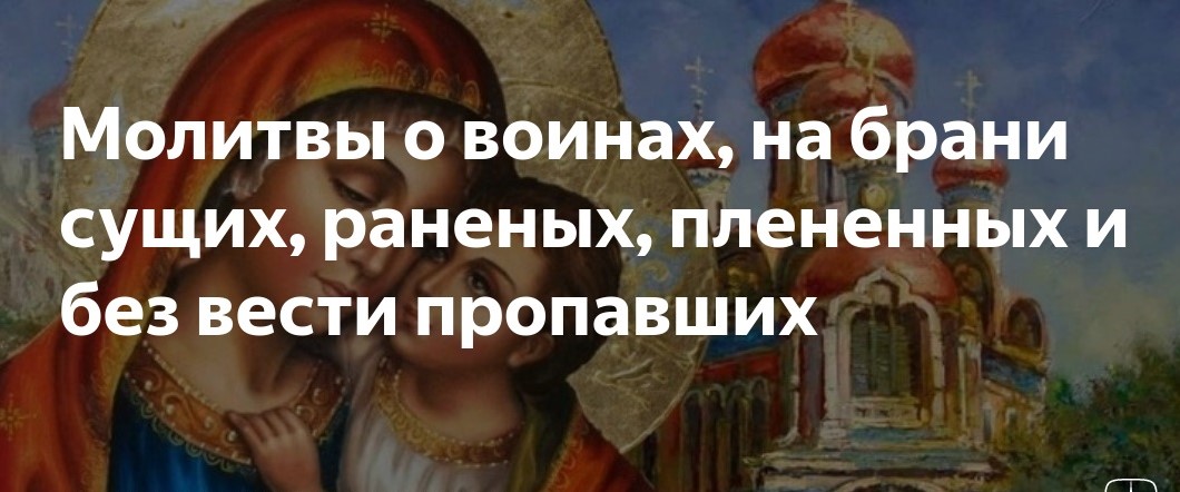 Пресвятая Богородице, теплая наша Заступнице и Спасение всем, призывающим Тя! Не имамы иныя помощи, разве Тебе, Владычице, Ты бо еси едина надежда и упование наше. Не презри слез наших и не отрини усердных молений, но спаси от смерти и от бед сохрани воинов наших [имярек], на поле...