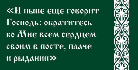 «И ныне еще говорит Господь: обратитесь ко Мне всем сердцем своим в посте, плаче и рыдании. Раздирайте сердца ваши, а не одежды ваши и обратитесь к Господу Богу вашему; ибо Он благ и милосерд, долготерпелив и многомилостив. Вострубите трубою, назначьте пост и объявите торжественное собрание. . . пусть выйдет жених из чертога своего и невест...