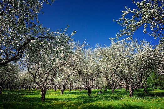 Яблони в цвету кипейно белом, ароматом головы нам кружат,