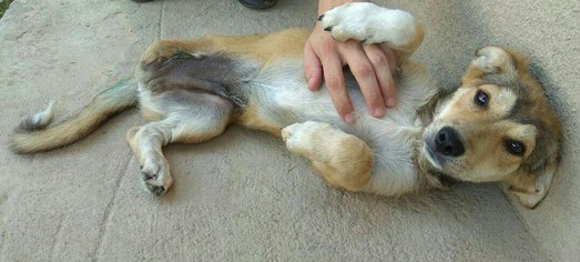 А теперь представьте картину. Щенок привязан на стоянке автомобильного рынка прямо под палящим солнцем, на голом асфальте. БЕЗ ВОДЫ, ЕДЫ, ТЕНИ. СОТНИ людей шли своими делами, но Велик и Милостив Всевышний, Он послал пройти мимо щенка волонтера из приюта.