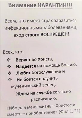 «Мои дорогие! Я призываю вас не поддаваться панике! 7 марта я была у о. Илия (8 марта - день рождения старца) и задала ему вопрос про коронавирус. Он очень спокойно ответил, что это все ерунда, надо быть с Богом, и тогда ничего не страшно, не надо бояться этого вируса. Это экономическая война, бесовские пули и бес паники.