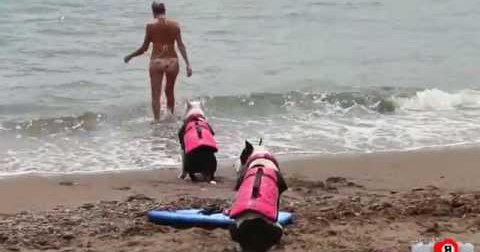 В видео - элементы тренировочного процесса и показ "а вот, что они ещё умеют" со всеми техническими приспособлениями, дипломированно и серьёзно. Молодёжь на пляже вначале опасались подходить к этой паре стаффордов, но раз хозяйка позволяет - почему бы не рискнуть.. Попробовал и я поиграться с этой парочкой - всё в видео))
