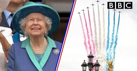 Thousands of people have gathered outside Buckingham Palace to watch a flypast of aircraft to mark the centenary of the Royal Air Force. Almost 100 planes representing the RAF over the years flew over The Mall following a parade by personnel.