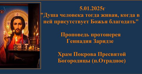 5.01.2025г "Душа человека живая, когда в ней есть Божья благодать" Проповедь прот. Геннадия Заридзе