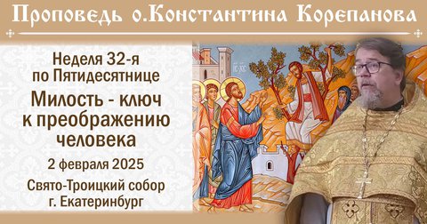 Проповедь священника Константина Корепанова на Божественной литургии в Свято-Троицком кафедральном соборе Екатеринбурга 2 февраля в Неделю 32-ю по Пятидесятнице, о Закхее.