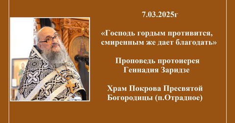 7.03.2025г «Господь гордым противится, смиренным же дает благодать» Проповедь о.Геннадия Заридзе