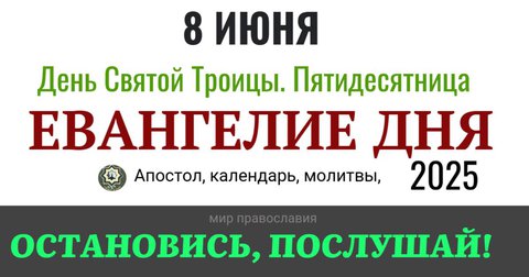 8 июня воскресенье Троица Евангелие дня 2025 с толкованием