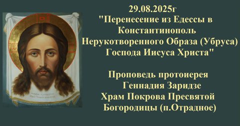 29.08.2025г "Перенесение из Едессы в Константинополь Нерукотворенного Образа Господа Иисуса Христа"